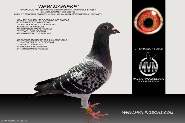 OTHER PIGEON BREEDS The base of our pigeons is still the Janssen pigeon. Butstanding still is not thinking about the future. Since we cannot stop time, we have to go along and plan ahead. Initially we did not want to have other pigeons in our lofts as the two "breeds" that we have had for some time. The Janssen's and the Eijerkamp - van Loon pigeons. "Den Duitser", NL14-1363479 has changed our thinking a bit. Meanwhile, we have managed to get hold of pigeons from known lofts here and there. Names like Dirk van Dyck, Gerard Koopman, Gaby Vandenabeele, Benny Steveninck, Günter Prange, Leo Heremans Stefaan Lambrechts and Dirk van den Bulck. It all are well-known breeds / breeders where we have bought pigeons for the past 2 years. But the base is still the Janssen pigeon!